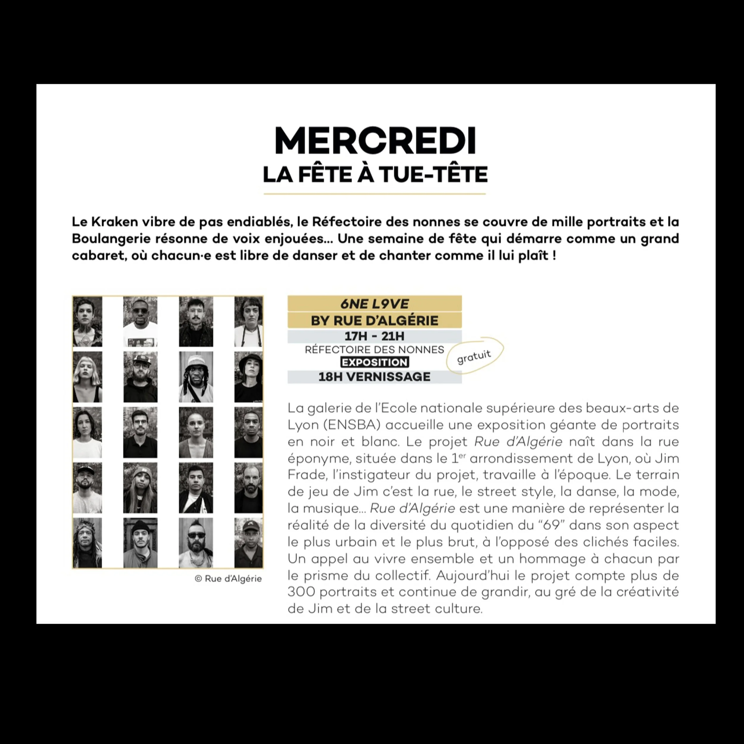 Expo Géante 6ne l9ve / Rue d’Algérie pour les nuits de Fourvières aux Subsistances